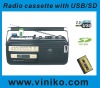 1,Radio cassette recorder with USB/SD 2,FM/AM/SW1/SW2 5 band 3,High sensitivity 4,DC6V(UM-1*4pcs) 5,AC:110V 220V 6,2 round pin plug or 2 flat pin plug 7,With powerful speaker 8,Built in condenser microphone 9,With 5 section antenna